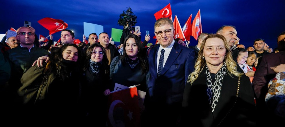 Alana İzmirlilerle birlikte yürüyerek giren Başkan Tugay, konuşmasının ardından yurttaşlarla sohbet etti ve gençlerin yürüyüşüne katıldı.