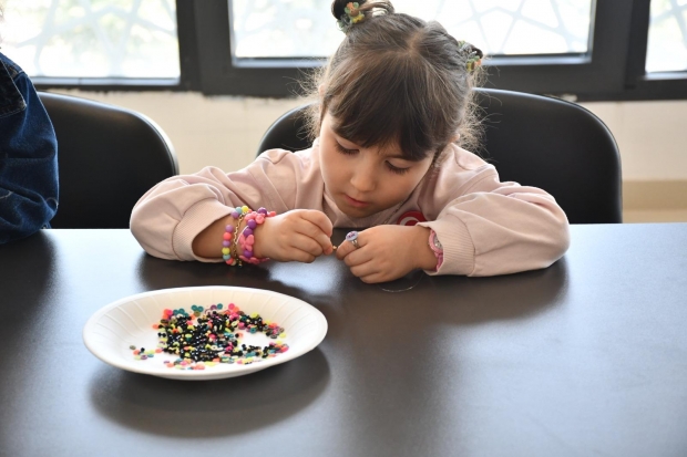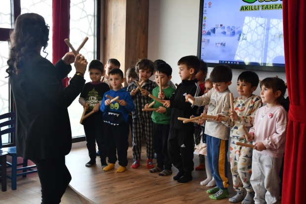 En çok ilgi gören atölyelerden biri de etkinlik ve oyun atölyesi oldu. Müzik aletleriyle ilgili çocuklara mini bir animasyon gösteriminin ardından ritim çubukları ile şarkı eşliğinde ritim çalışması gerçekleştirildi. Böylece manyetik duvar, lego duvarı, cırtlı duvar alanlarında çocukların, küçük kas becerileri ve el göz koordinasyonun gelişimine katkı verildi. Özelikle kız çocuklarının yoğun ilgi gösterdiği takı tasarım atölyesinde boncuktan bileklik yaptı. Müzik atölyesinde piyano ve keman dinletisi gerçekleştirilerek müzik aletleri öğrencilere tanıtıldı. Bunun yanı sıra ritim atölyesinde her öğrenci tek tek darbukayla ritim çalışmasını deneyimledi. Hem öğreten hem de eğlendiren bir günü geride bırakan minikler, çok güzel bir gün geçirdiklerini dile getirdi. Birbirinden farklı atölyelerde zaman geçiren minikler, yeteneklerini de keşfetme fırsatı buldular. Çocukların, çok yönlü gelişimlerini destekleyen bu programlar, ilerleyen süreçlerde de devam edecek.