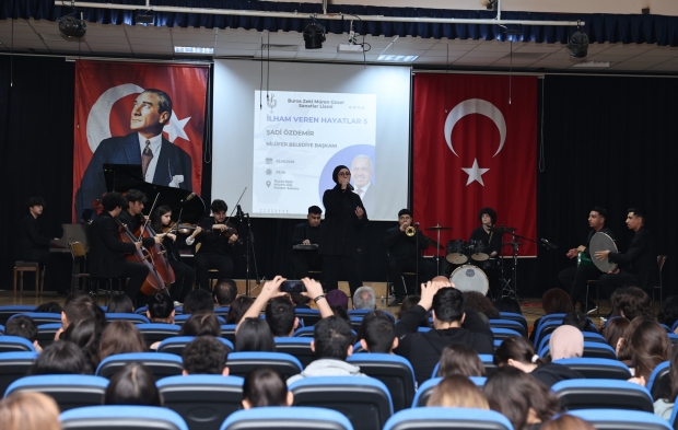 Nilüfer Belediye Başkanı Şadi Özdemir, Zeki Müren Güzel Sanatlar Lisesi’nde düzenlenen “İlham Veren Hayatlar 5” başlıklı söyleşiye katıldı. Söyleşi öncesinde okul öğrencilerinden oluşan orkestra özel bir konser verdi. Yeteneklerini sergileyen öğrenciler, izleyenlerden alkışları topladı. Ardından gerçekleştirilen söyleşiye genç sanatçı adayları yoğun ilgi gösterdi. Başkan Şadi Özdemir, kendi yaşamından kesitler sunarak, gençlerin hayallerine ulaşma yolunda onlara ilham vermeye çalıştı. Öğrencilere karşılaştığı zorlukları, bu zorlukların üstesinden nasıl geldiğini anlatan Başkan Şadi Özdemir, başarıya ulaşmak için sahip olması gereken motivasyonu aktardı.