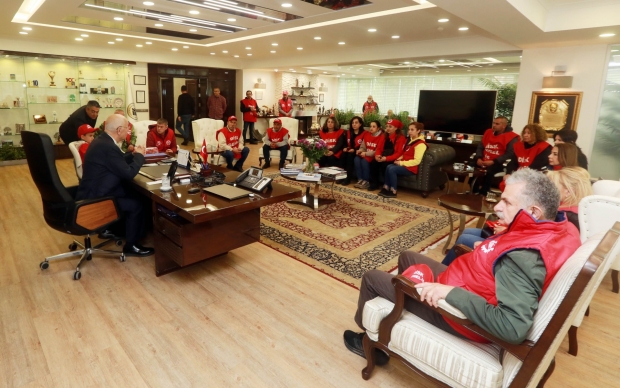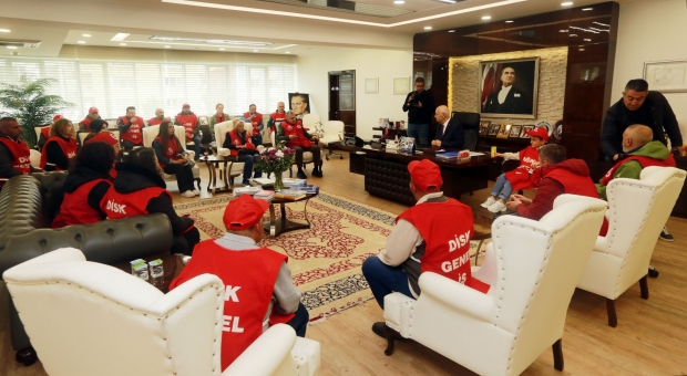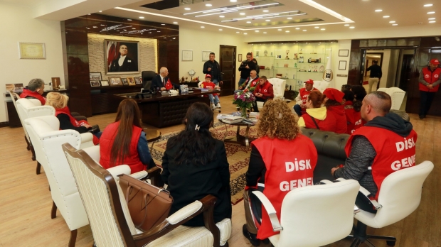 Yenimahalle Belediye Başkanı Fethi Yaşar, 1 Mayıs Emek ve Dayanışma Günü münasebetiyle belediye işçilerini makamında ağırladı.