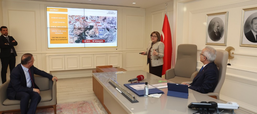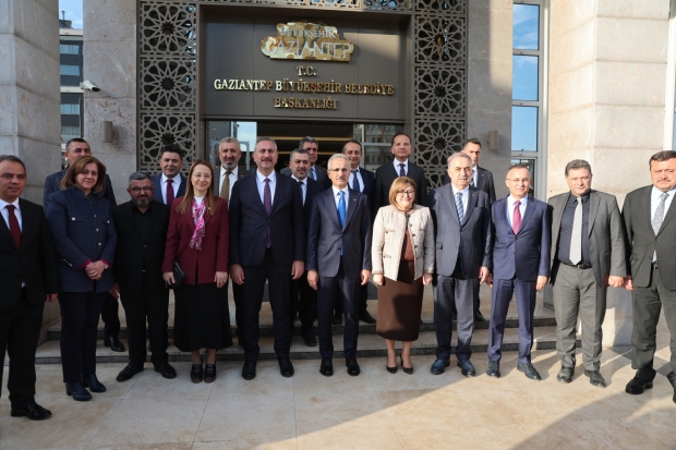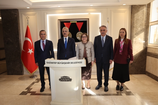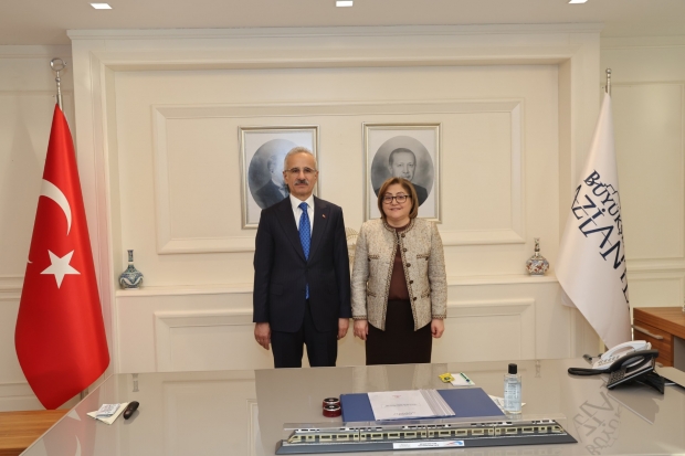 GAZİRAY’ın yerli ve milli ilk banliyö tren setlerinin test sürüşü ve devir teslimi ile OSB-Dülük Tüneli’nin temel atma töreni için Gaziantep’te bulunan Bakan Uraloğlu, beraberinde AK Parti Genel Başkan Yardımcısı Hayati Yazıcı ile Büyükşehir Belediyesi’ni ziyaret etti. Başkan Fatma Şahin ile yapılan görüşmede, ticaret açısından önemli bir yatırım olarak değerlendirilen Lojistik Köy Projesi ele alındı.