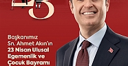 23 Nisan Ulusal Egemenlik ve Çocuk Bayramı dolayısıyla kutlama mesajı yayınlayan Balıkesir Büyükşehir Belediye Başkanı Ahmet Akın, “Değerli Balıkesir Ailem, Çok Sevgili Çocuklar; milli egemenliğimizin en büyük sembolü Gazi Meclisimizin kuruluşunun 105. yıl dönümünü, tüm Balıkesir Ailem ile birlikte kutlamanın coşku ve sevincini yaşıyoruz. ‘Egemenlik kayıtsız şartsız milletindir’ diyerek tam bağımsızlık uğruna verdiğimiz mücadelenin en önemli adımı olan Meclisimizin çatısı altında, milli birlik ve beraberlik içinde ve tam bağımsız, demokratik bir ülkede nice 23 Nisan’ı hep birlikte kutlamayı temenni ediyorum.