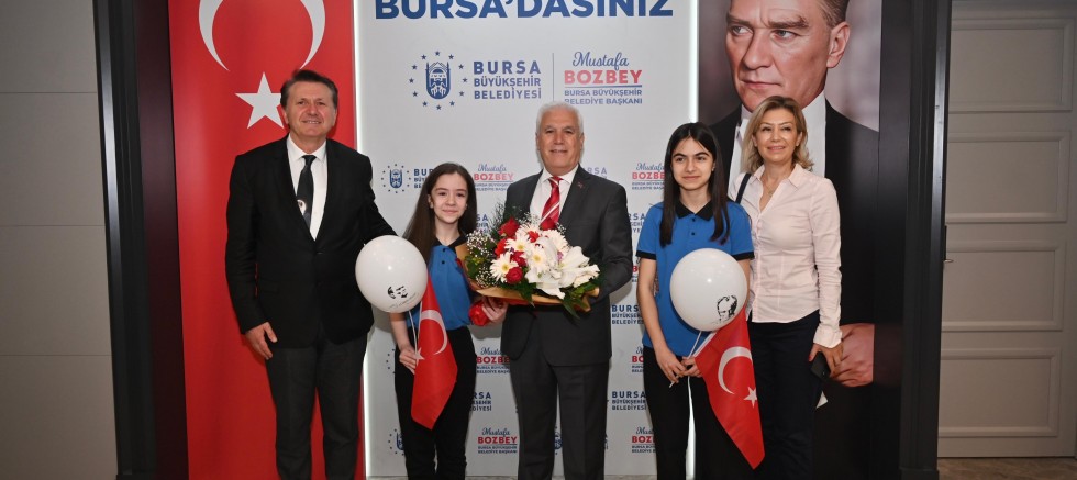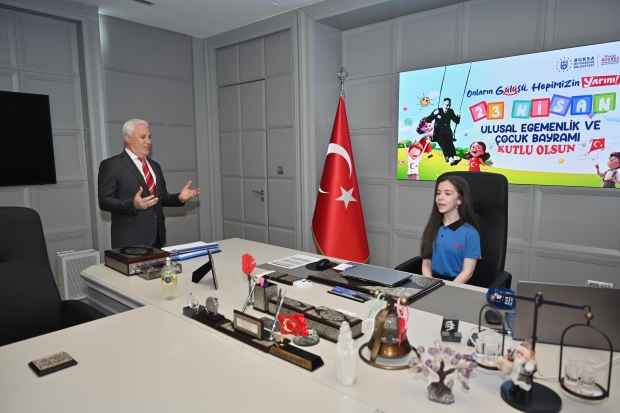 23 Nisan Ulusal Egemenlik ve Çocuk Bayramı’nda, geleceğin ülke ve kent yöneticileri başkanlık koltuklarını devraldı. Bursa Büyükşehir Belediye Başkanı Mustafa Bozbey de koltuğunu Dilek Özer Ortaokulu 7. sınıf öğrencileri Duru Tuna ve İlke Ormancı’ya devretti. Bursa Büyükşehir Belediyesi Hizmet Binası’nda düzenlenen devir teslim töreninde, geleceğin başkanlarına Büyükşehir Belediyesi Genel Sekreter Yardımcısı Mehmet Yıldız, okul müdürü Tayfun Şahin, sınıf öğretmenleri ve aileleri de eşlik etti.