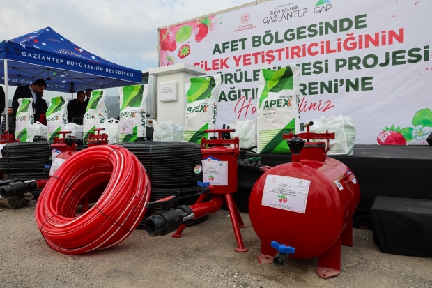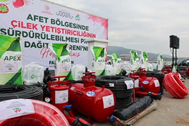 Kahramanmaraş merkezli şiddetli depremlerden etkilenen Nurdağı ve İslahiye’de çiftçilerin gelirinin arttırılması ve üretimin tekrardan sağlıklı bir şekilde sağlanması amacıyla Büyükşehir Belediyesi’nin destekleri devam ediyor. Büyükşehir Belediyesi Tarımsal Hizmetler Daire Başkanlığı ile GAP Bölge Kalkınma İdaresi Başkanlığı iş birliğinde bölgede tarımsal faaliyetlerin sürdürülebilirliği için çilek üretiminin yaygınlaştırılması amacıyla başlatılan yeni destek projesinin dağıtım töreni Nurdağı’nda yapıldı.