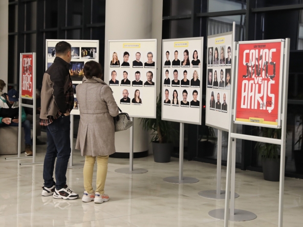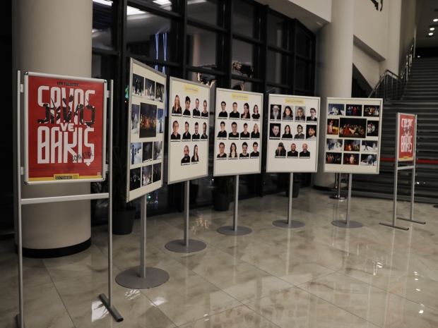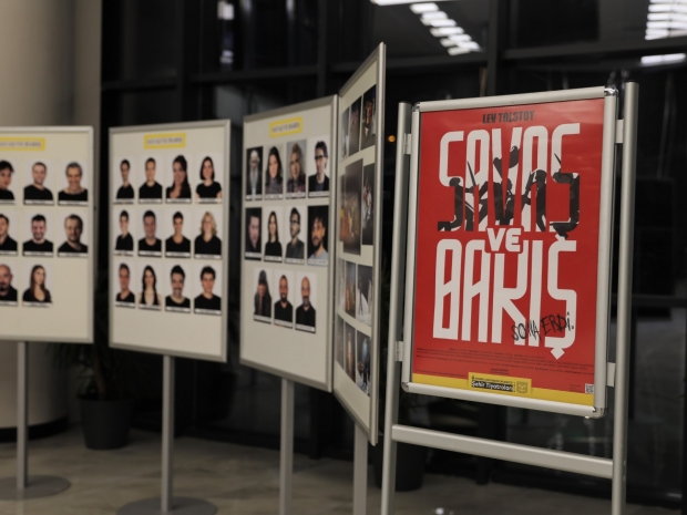 Lev TOLSTOY’un yazdığı, Eva MAHKOVIC’in uyarladığı, yönetmenliğini Aleksandar POPOVSKI’nin yaptığı “Savaş ve Barış isimli oyunda 22 oyuncu yer aldı. Oyunun müzikleri Kiril DJAIKOVSKI, Dramaturg Başak ERZİ, Dekor Tasarımı: Sven JONKE ve Vanja MAGIĆ yer alırken oyuncuların kostümleri Canan GÖKNİL, Işık Tasarımı Osman AKTAN, Efekt Tasarımı Erhan AŞAR üstlenirken yardımcı yönetmenliğinde ise; Juš Andraz ZIDAR yaptı.
