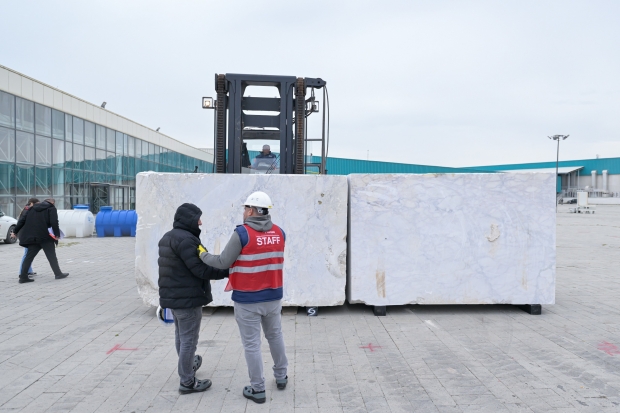Fuarda sergilenecek blokların her birinin ağırlığı 20 tonu aşabiliyor. Bini aşkın bloğun getirileceği fuar alanında sergilenecek mermerlerin toplam ağırlığı ise yaklaşık 10 bin ton olduğu bilinen Eyfel Kulesi’nin iki katına ulaşarak 20 bin tonu bulacak.