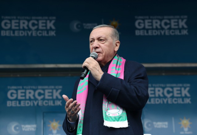 Birilerinin hiç bir iş yapmadan, hiç bir eser ve hizmete imza atmadan sadece eleştirerek, sadece hata yapılmasını bekleyerek siyaset yaptığını sandığını ifade eden Cumhurbaşkanı Erdoğan, "Bu, 'armut piş ağzıma düş' zihniyetini hasbelkader yönetimini ele aldıkları şehirlerimizin nasıl geriye götürdüklerinin çevrenizdeki örneklere bakarak sizlerde görüyorsunuz. Üstelik bu uğurda bölücü örgütün uzantılarıyla demlenmekten, eskiden bizimle birlikte olanları güya kurnazlık yapıp karşımıza çıkarmaktan, deste deste para görüntüleriyle siyaseti kirletmekten öte gitmedi" dedi.