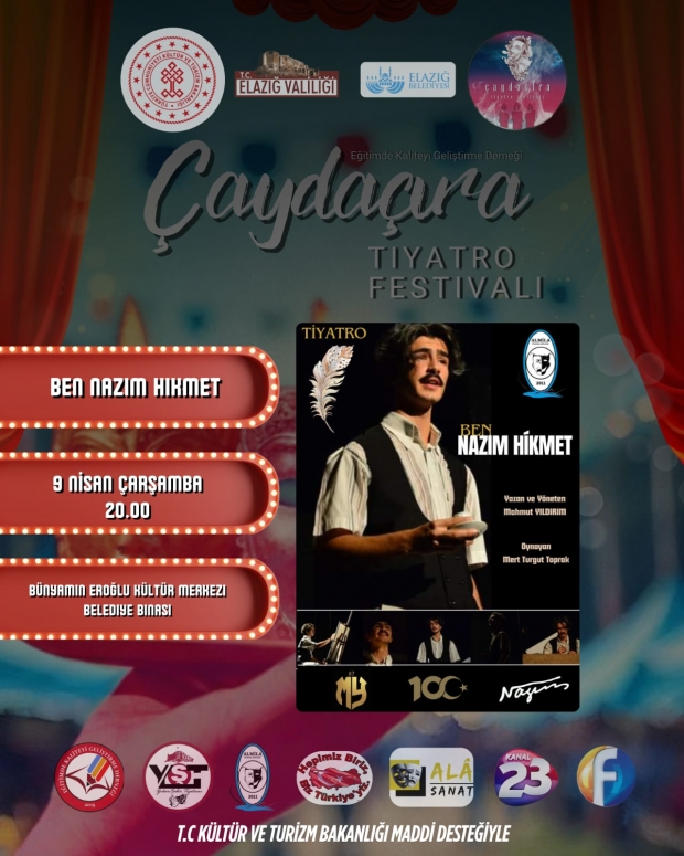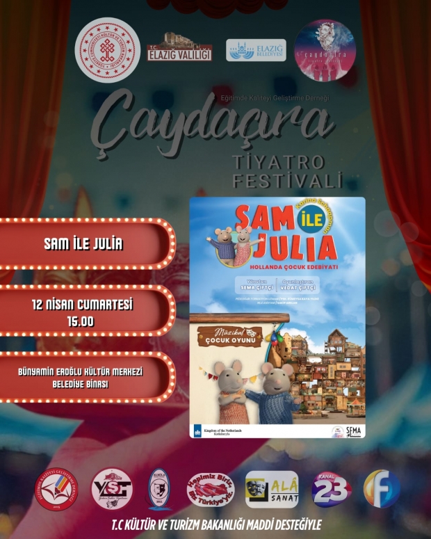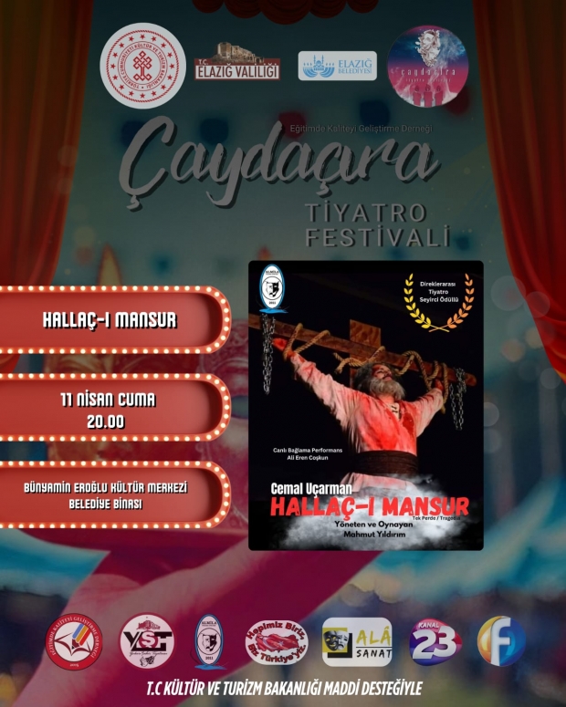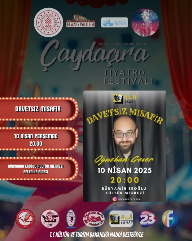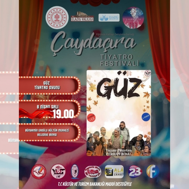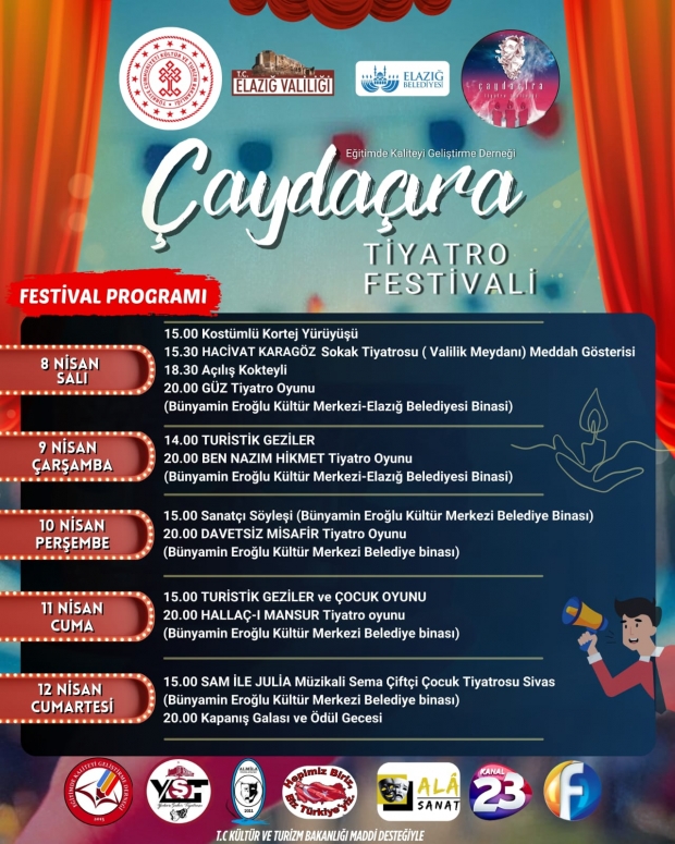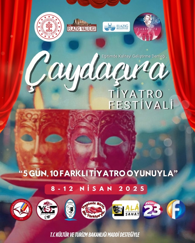 Eğitimde Kaliteyi Geliştirme Derneği tarafından organize edilen ve Kültür ve Turizm Bakanlığı tarafından desteklenen Çayda Çıra Tiyatro Festivali, 8-12 Nisan 2025 tarihleri arasında tiyatroseverlerle buluşacak. Festivalin merkezi, Elazığ Belediyesi Bünyamin Eroğlu Kültür Merkezi olacak.
