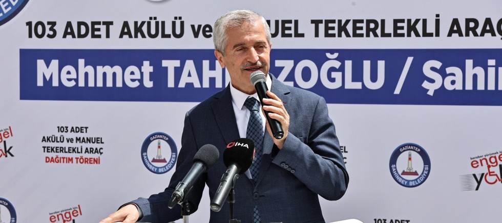 Şahinbey Belediye Başkanı Mehmet Tahmazoğlu, engellilere verilen desteklerin artarak devam ettiğini belirterek “Engelli olmayacağımızın hiçbir garantisi yok. Hepimiz engelli adayıyız ve engelli olabiliriz. Engelli kardeşlerimizin yanındayız. Gazoz kapağı, şişe kapağı gibi şeyler toplayın da size araç verelim demiyoruz. Bugün itibariyle toplam 3.886 adet akülü ve manuel sandalyeyi engelli kardeşlerimize hiçbir talepte bulunmadan hediye ettik. Bunlar onların hakkı dedik. Güle güle kullansınlar” dedi.