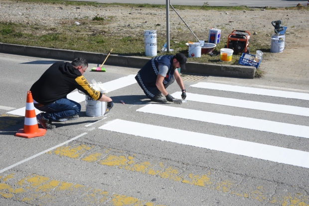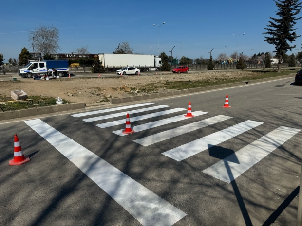 Çalışmalar sırasında yolda eski işaretlemeler silinerek, daha dayanıklı ve uzun ömürlü işaretleme boyaları ile yeni çizgiler çekildi.